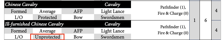 Ill-furnished Chinese Cavalry is Unprotected not Protected