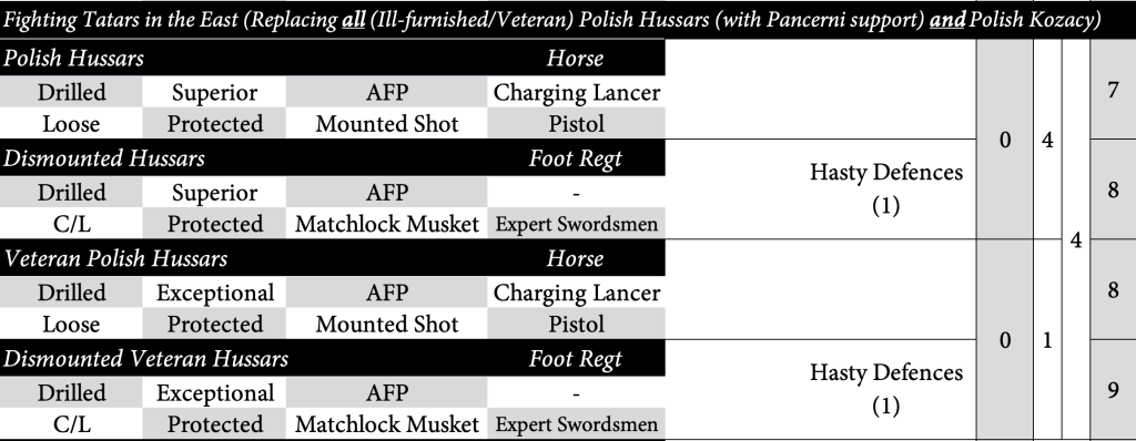Fighting Tatars in the East option – Veteran Hussars reduced to 1
